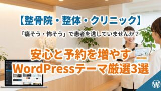 整骨院・整体・クリニック向けテーマ 整骨院・整体・クリニック向けWordPressテーマ3選|安心感で予約を増やす 整骨院・整体・クリニックのホームページ制作で重要なのは「安心感」です。本記事では、患者様の信頼を獲得し、予約増加につながるWordPressテーマを3つ厳選しました。SEOに強く、スマホ対応も万全なテーマでWeb集客を加速させましょう。 2025.12.26 整骨院・整体・クリニック向けテーマ